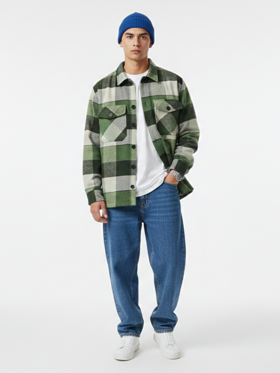 Stay ahead in style with Vuluci’s Double Pocket Oversized Cotton Checked Shacket for Men, designed for modern streetwear and cold comfort. Made from premium breathable cotton fabric, this oversized checked shacket features a relaxed fit, classic plaid pattern, and functional double chest pockets. In this winter pair it with jeans or cargos for a trendy, effortless look.