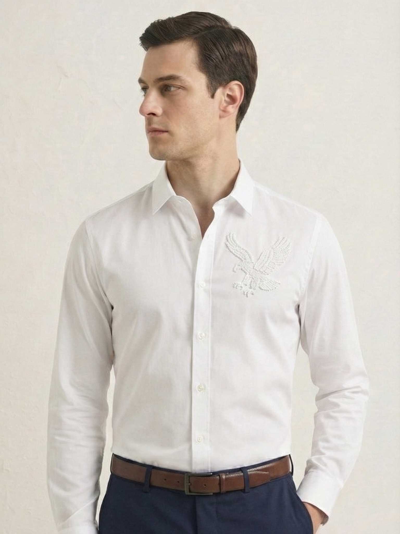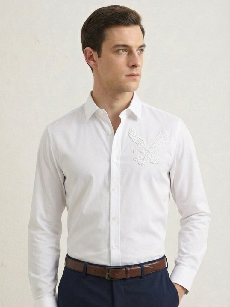 White Eagle Embellished Handwork Designer Shirt